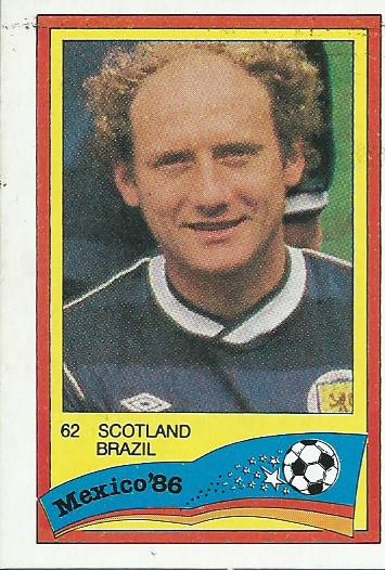 Full Scottish players are: Team card, Hogg, Strachan, Albiston, Brazil, Miller, Nicol, Souness, McStay, Archibald, Cooper and Rough.