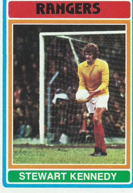 Other notable Scots internationalists making their card debut that year were Dundee United’s Paul Sturrock and David ‘toepoke’ Narey sporting a fine Pageboy style haircut, Motherwell’s Willie Pettigrew, whose 2 goals in 5 games is quite creditable, a rather acrobatic Paul Sturrockand finally Rangers Stewart Kennedy. The less said about his Scotland career the better methinks.