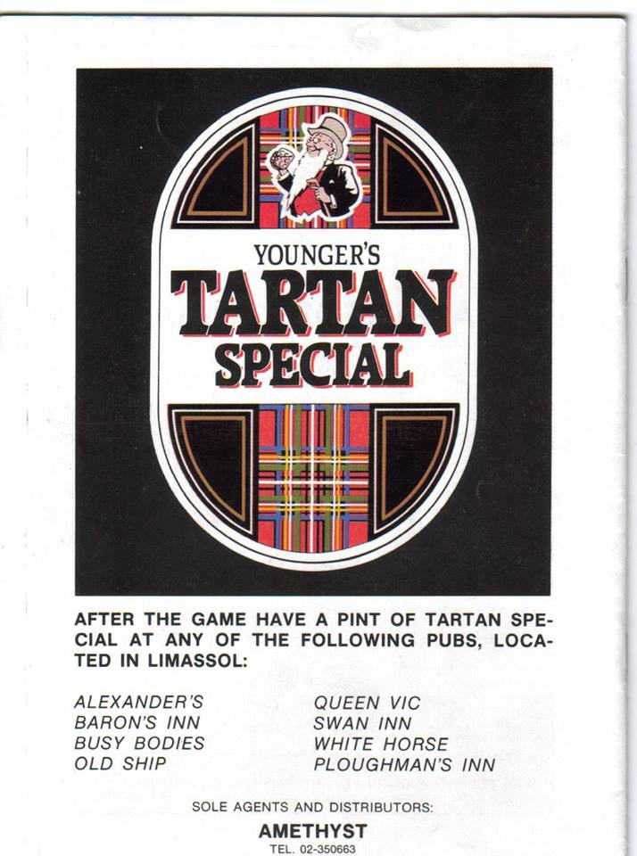 As well as being a dinosaur who struggles with new technology I also don’t like lager. It’s Tartan Special [or McEwan’s Export] for me when I can find pubs in Glasgow and beyond that actually sell the stuff. As such I was almost moved to tears when I recently re-discovered an advert for Tartan Special on the reverse of the Cyprus-Scotland programme from 1989 – the world cup qualifier in which Richard Gough netted the winner about two days into stoppage time.