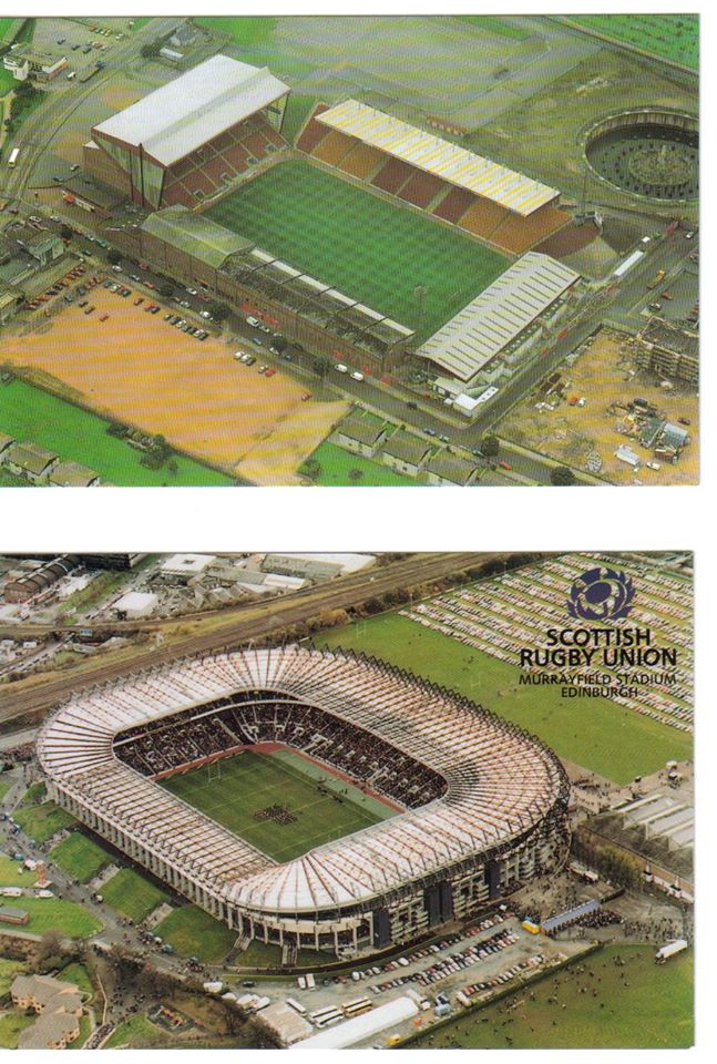 The Parkhead ‘Guesthouse’ has staged more Scotland internationals than any other guesthouse with Chez Ibrox next in line. The ‘Beachhouse’ at Aberdeen is also in double figures.When they rebuilt the two Glasgow grounds towards the end of the 20th century both Celtic and Rangers wisely decided to eliminate the running tracks despite them holding numerous records for both athletics and cycling at one time. No room for sentiment here, just get the crowd closer to the football action.All the postcards date from the late 1990s so there will be some changes since then – if not to the actual stadia then to their environs.