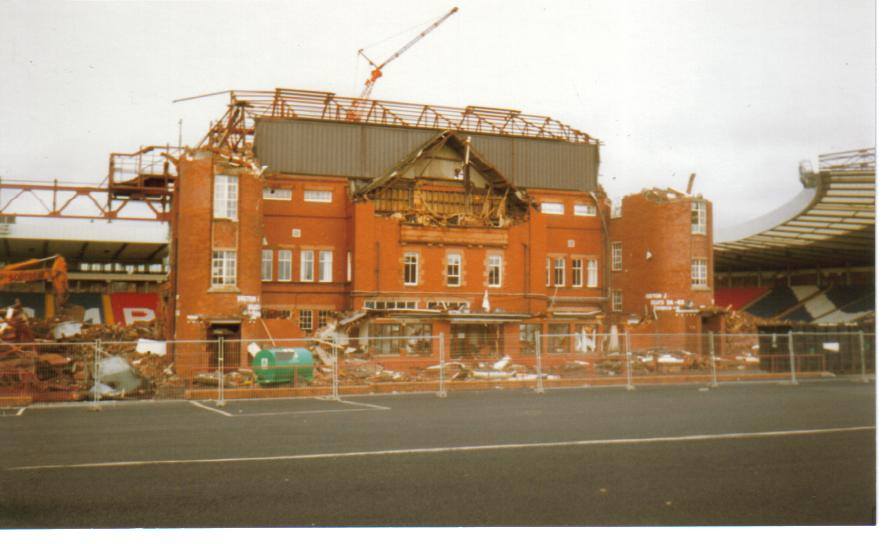 In my opinion the bulldozing of the South Stand [which dated from 1914] with its two brick towers featuring medieval castle style motifs was an act of vandalism that was right up there with the demolition of Glasgow’s St.Enoch Railway Hotel and the Empire Theatre. Progress my arse! Surely the facades could have been saved somehow?