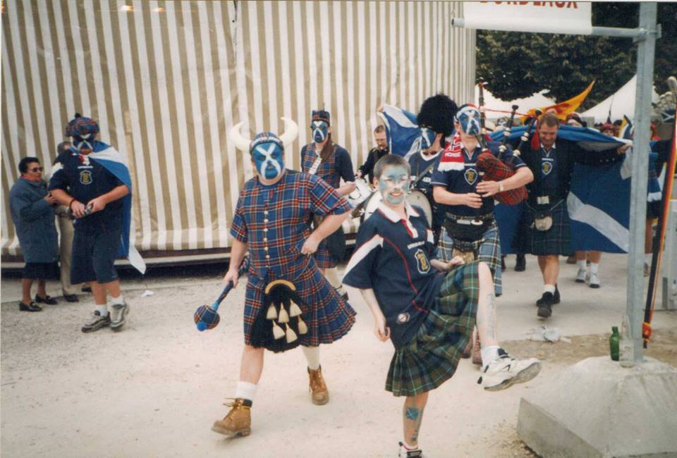 Of course it was short lived as we were defeated when the ball went in off Tommy Boyd’s shoulder to put them 2-1 up. As soon as the final whistle sounded the skies, which had previously been bright blue, immediately turned black, there was a huge clap of thunder and an eruption of torrential rain that soaked us through to the skin within minutes. It was as if all the heavens were cryin for us sufferin another inglorious defeat. But never mind, it was still a wonderful adventure as it was off to Bordeaux the next day where we met up with another of my brother’s, John, and more friends in preparation to take on Norway (We’re the famous tartan army and we’re here to save the whale – save the whale, save the whale…).