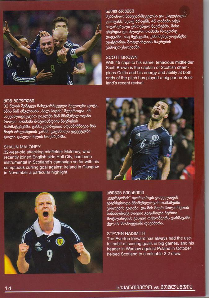 The only Scotland player pen pics were of Shaun Maloney, Scott Brown and Steven Naismith although there was also an article entitled ‘Mr. Gemmill’ which took a brief look at the career highlights of Oor Archie. An added bonus however was photographs [and retro pen pics] of former Georgian internationalists Giorgi Nemsadze and Temur Ketsbaia resplendent in their Dundee F.C. strips. Well I liked it anyway…