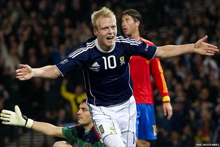 Steven’s Scotland career began as a Kilmarnock player in 6th June 2007 under Alex McLeish coming on as a sub against Faroe Islands in a Euro Qualifier replacing his old Killie teammate Kris Boyd. Shaun Maloney and Garry O’Connor had already completed the scoring as Scotland won 2 nil.