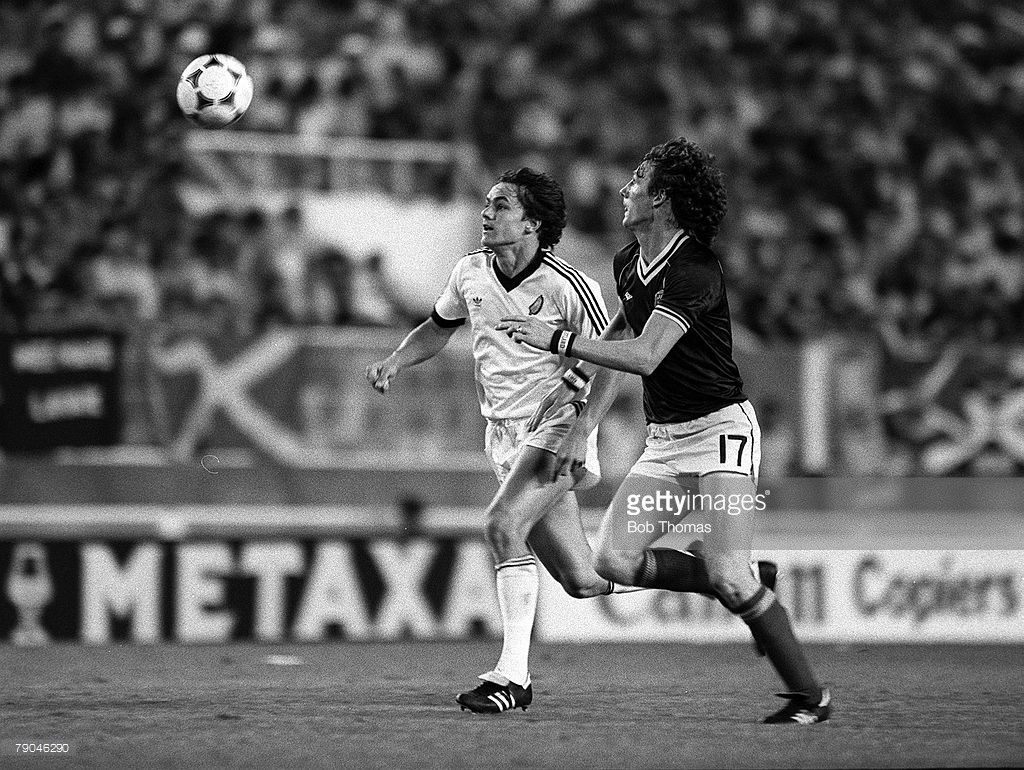 Allan gained four Scotland caps in total; all under Jock Stein and was part of the 1982 World Cup Squad. His first cap came against Netherlands in a friendly at Hampden in March, 1982, Jim Bett then of Rangers also made his debut in this game. Allan played alongside Willie Miller that night. A Frank Gray penalty and a Kenny Dalglish goal was enough to give Scotland a 2-1 victory. Next up a month later was a Home International against Northern Ireland in Belfast, where Allan played in defence with Alex McLeish, who was replaced by Alan Hansen in the 75th minute. The game ended in a one each draw with John Wark scoring for Scotland. This game had been brought forward due to I imagine the aforementioned European Cup match being played on May 26th.