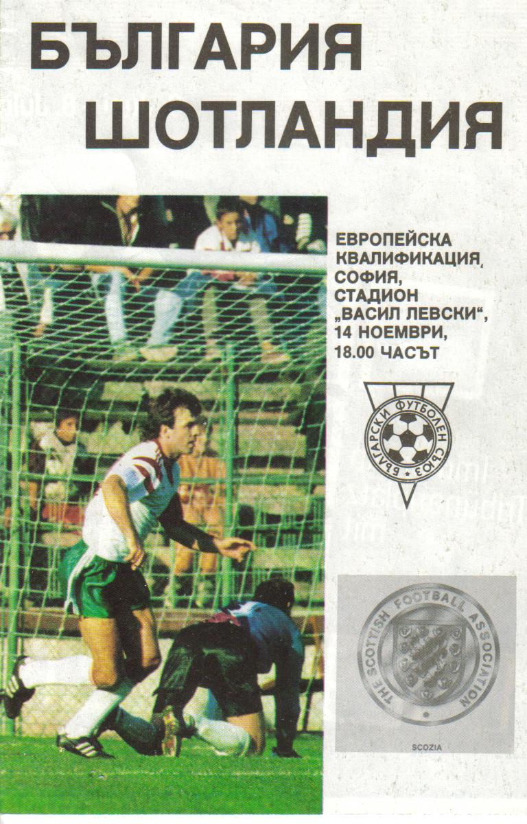 25 Years Ago. 14th November, 1990 and we have had a good start to our 1992 Euro campaign which would ultimately see us through to the finals for the first time in Sweden. With Andy Roxburgh in charge we had already recorded 2-1 wins at home to both Romania and Switzerland. Next up was the Vasil Levski Stadion in Sofia against Bulgaria. An early McCoist goal saw us start well but an equaliser in the 70th minute no doubt saw a nervy finish to the game; however another point on the road to Sweden was picked up.