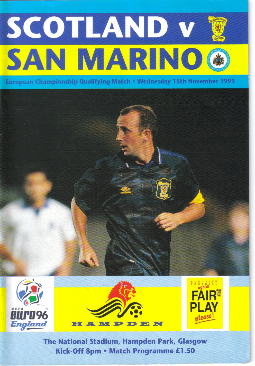 20 Years Ago. 15th November, 1995 and it’s the last game of our successful Euro ’96 campaign. We had already ensured qualification so when San Marino rolled up to Hampden Park, it was a relaxed party night for the Tartan Army.