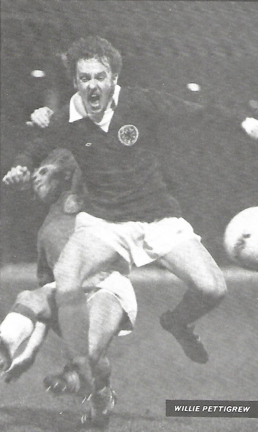Willie Pettigrew like Joe Craig made a quick burst into the International scene, netting the only goal v Switzerland at Hampden in April 1976 after only two minutes of play. Willie also netted in his second game too as Scotland beat Wales 3-1. Overall he gained a total of five caps.