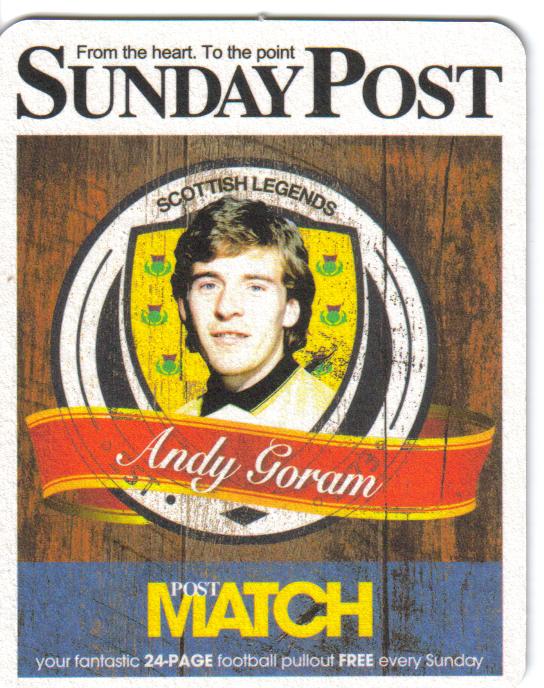 The Sunday Post newspaper’s 2015 series of Scottish Football Legends beermats begins with goalkeeper Andy Goram – both of them in fact.
