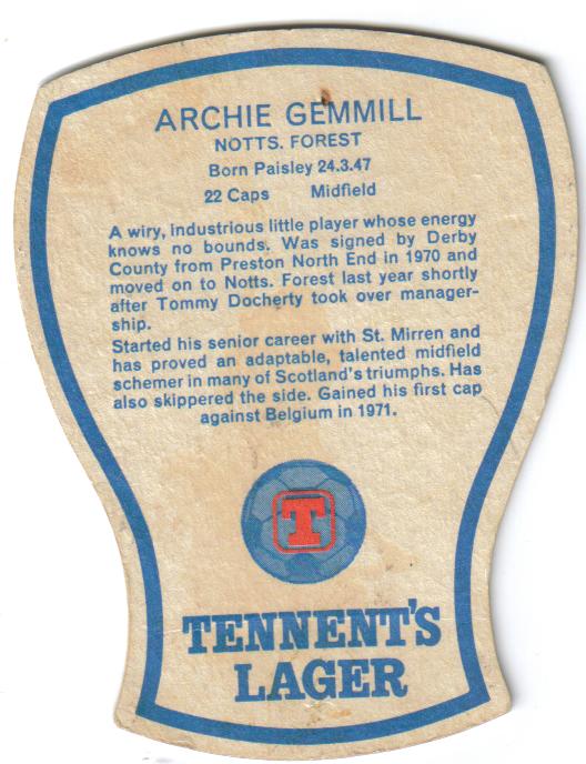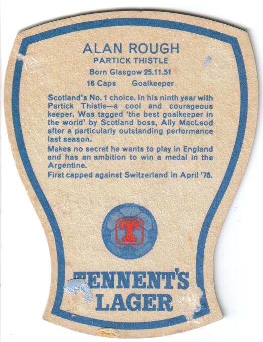 Tennent’s Lager’s 1978 World Cup beermat collection – starting with the Messiah himself, Ebullient Ally…..