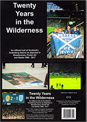 ‘Twenty Years in the Wilderness’ is an offbeat look at Scotland’s international footballing famine [1998 – 2018] as depicted in around 120 colour photographs and associated humorous narrative. The book is divided into two distinct themes – matches/stadia [from Aberdeen to Zagreb] and poster art/streetscenes. This limited print-run publication does not seek to glorify failure but instead attempts to document two decades of our sporting/social history into a quirky item of football memorabilia.