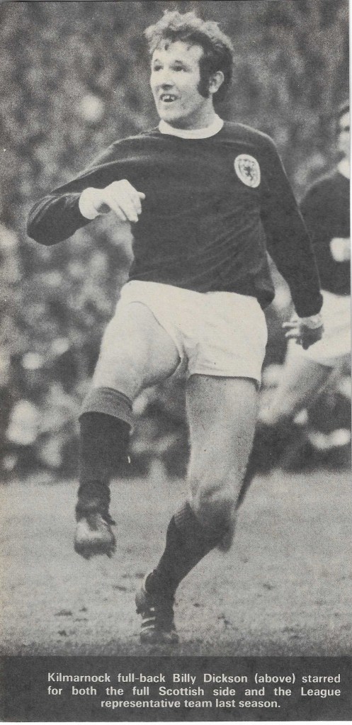Billy Dickson of Kilmarnock who also made his debut v Northern Ireland in April 1970. Billy won five caps in total all coming in 1970/71.
