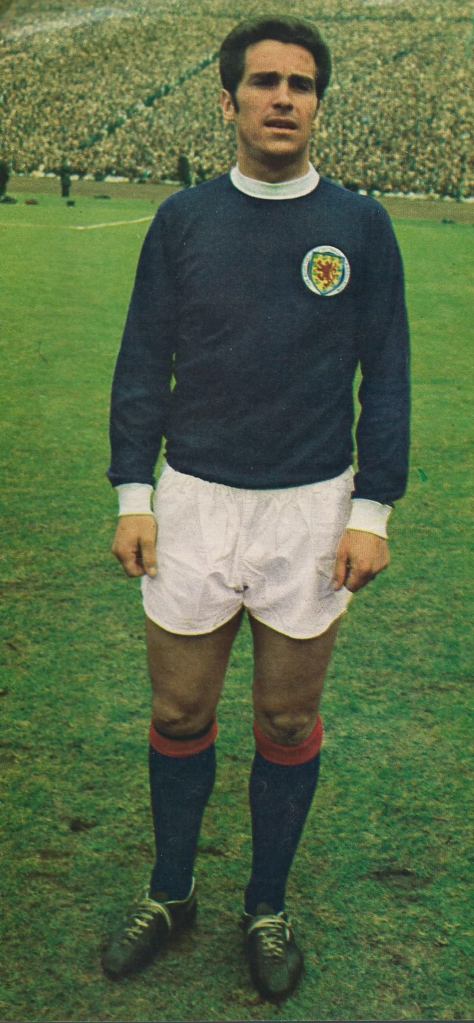 Player #37. June 9th 1971 and Jocky Scott of Dundee makes his debut appearance for Scotland in a 1-0 loss to Denmark. Jocky’s 2nd and final cap was won five days later v USSR. I don’t have a photo of him in Scotland colours.