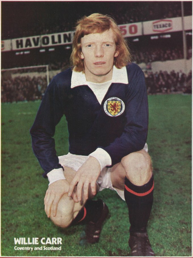 Also making his debut v Northern Ireland in April 1970 was Willie Carr of Coventry City. Willie won six caps and was never in a losing side.
