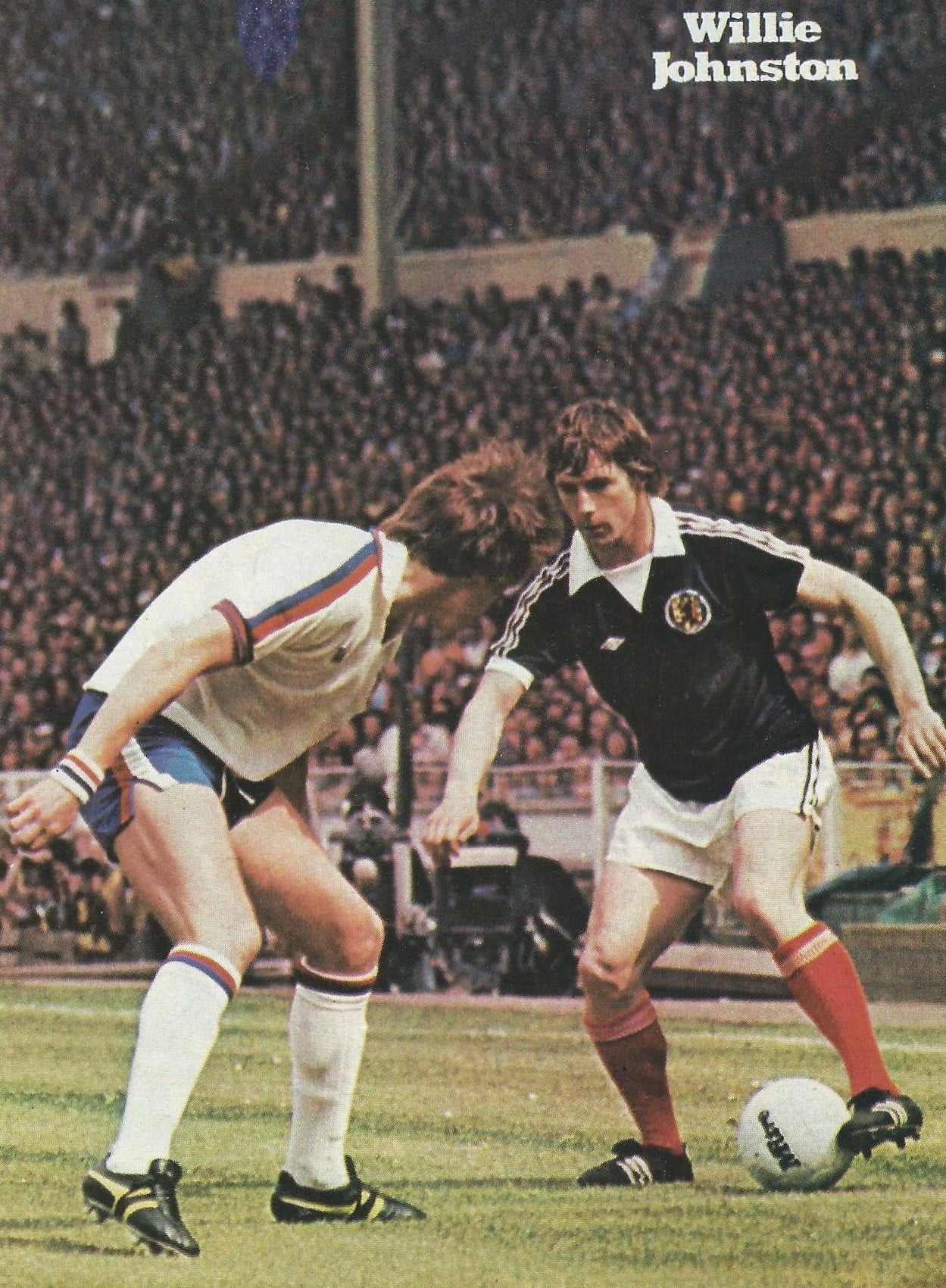 Willie won 10 caps with Rangers & 12 with West Brom He is seen here v England June 1977.