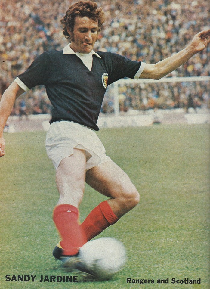 Player #21. Making his debut appearance for Scotland in the 1-0 victory over Denmark on November 11th, 1970 was Sandy Jardine of Rangers. Sandy was to win 38 caps in total.