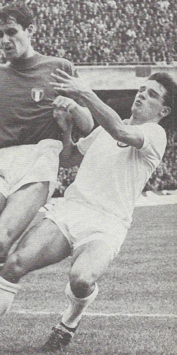 Alan won 5 caps with Dundee & 17 with Spurs, scoring 12 goals in total. He is seen here v Cyprus, May 1969.