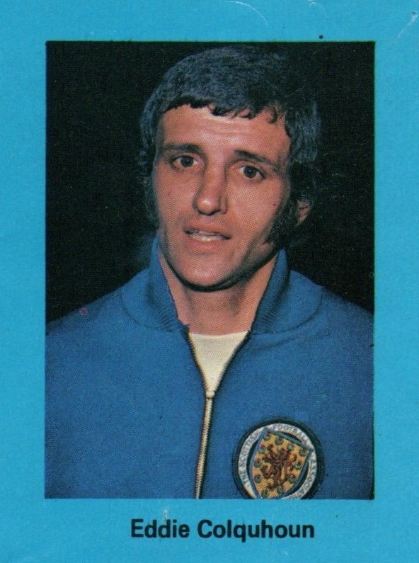 Player #41. October 13th, 1971 and the Tommy Docherty era begins with a 2-1 win over Portugal. Making his first appearance in the 1970s is Eddie Colquhoun of Sheffield United. Eddie was winning his third cap having played in the 1967 World tour. He was to win 11 caps altogether.