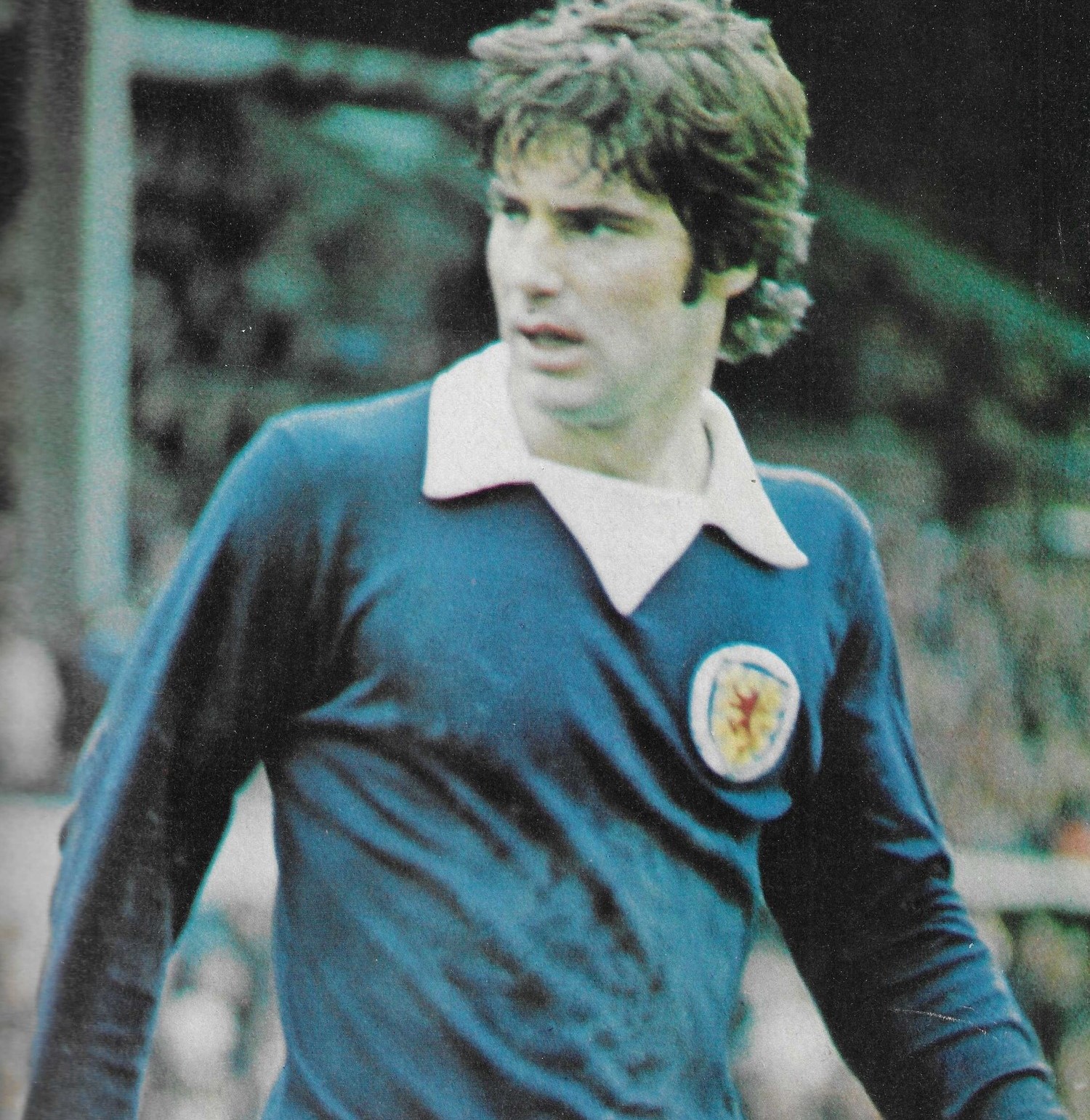 Player #49. April 26th, 1972 and Scotland beat Peru 2-0 at Hampden. Also making his debut that night was Willie Donachie of Manchester City. Willie went on to win 35 caps.